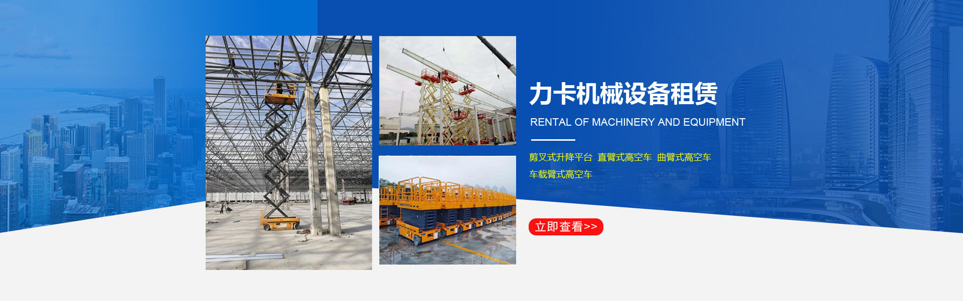 洛陽力卡機械設(shè)備租賃有限公司是一家從事高空作業(yè)平臺租賃的企業(yè)。公司現(xiàn)有6-12米剪叉式升降平臺、16-20米曲臂式高空車、20-58米直臂式高空作業(yè)車、自行越野剪叉車等,車輛新、型號齊全、可滿足各種高度、各種環(huán)境的高空作業(yè)。公司全部采用品牌設(shè)備安全又可靠。